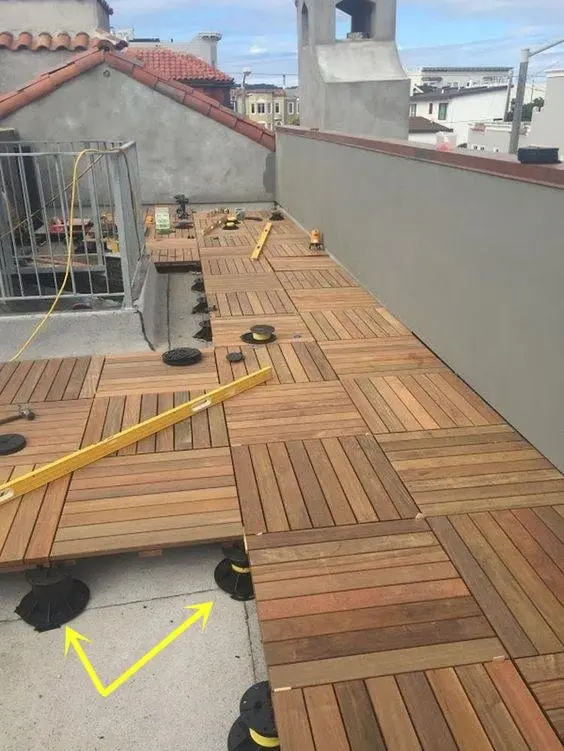 顶楼隔热是很多住在顶楼业主的心病了,夏天热不热全靠开发商用的隔热材料靠不靠谱了,不管是蓄水还是种菜都得考虑承重顶楼承重的问题,还容易被投诉,这也不行!那也不行!露台可不能白白浪费!还是学学国外的法子吧,在顶楼露台上架空5cm来铺防腐木地砖。